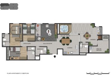 Com 132,65m² de área privativa, esta belíssima cobertura de 3 dormitórios, sendo 2 suítes, oferece espaços inteligentemente distribuídos para o seu conforto. As salas, perfeitas para momentos de convívio, integra-se harmoniosamente com os demais ambientes. Além disso, conta com 2 vagas de garagem para sua comodidade.